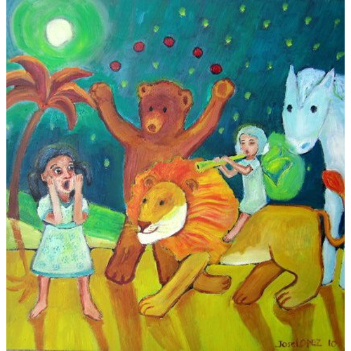 animal, cat, floral, gabo family, gabriel, music, painting, people, surrealism, toy, water