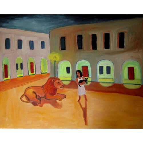 • girl with lion and cat